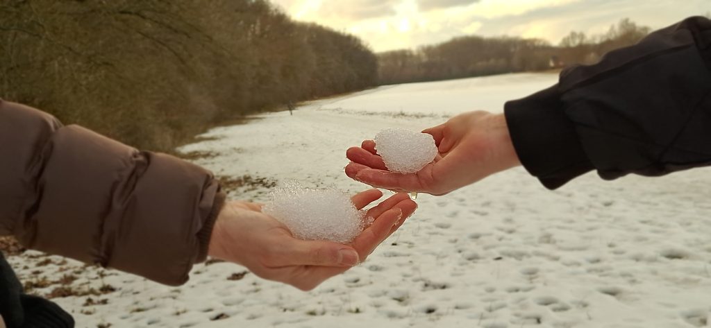 Die Gehmeditation öffnete den Blick für verschiedene Perspektiven: den Boden unter den Füßen, den Himmel über den Wipfeln, die feinen Spuren im Schnee, die uns zeigen, dass wir Teil eines größeren Ganzen sind. So wurde der Wald zum stillen Begleiter, zum Raum der Achtsamkeit und des Staunens.