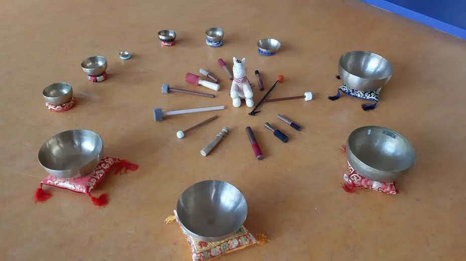Kreises standen die Klangschalen, ihre sanften Töne bereits in der Luft schwingend. Die Kinder lauschten aufmerksam, als die Schalen