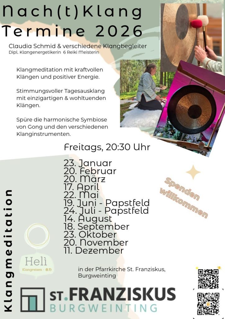 in der wunderschönen Kirche St. Franziskus – Burgweinting kannst du deine Seele baumeln lassen und dich entspannen. Ihre wohltuende Schlichtheit lenkt dich nicht ab sondern lässt dich ganz in dir Ruhen.